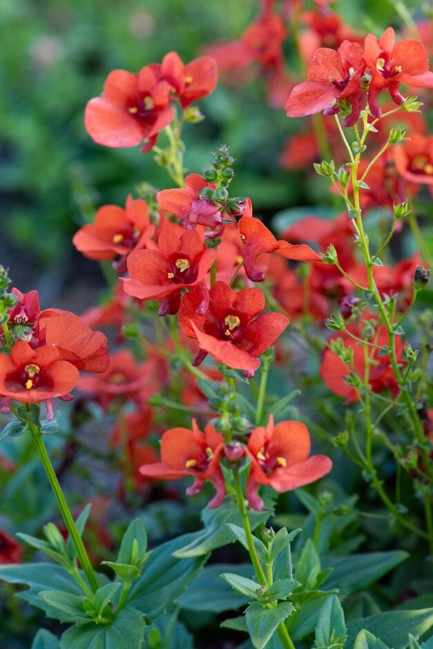 Diascia can be annuals or semi-evergreen perennials, usually making a mat of neat foliage with racemes of cup or bell-shaped flowers, usually in shades of pink, and each with two short spurs