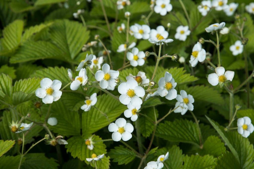 Fragaria are stoloniferous perennials with leaves composed of three leaflets, and rounded white or pink flowers followed by edible red fruits