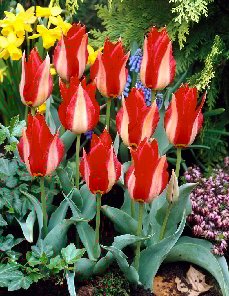 Tulipa are bulbous perennials with characteristic flowers, in a wide range of colours, in spring