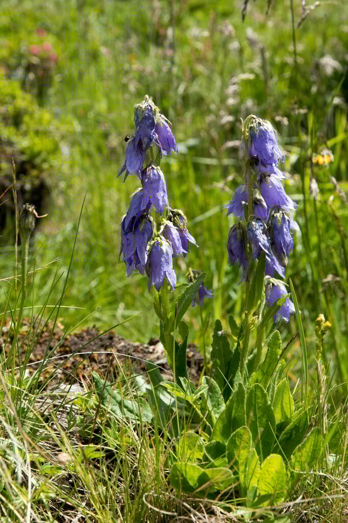 Campanula may be annuals, herbaceous or evergreen perennials, with bell or star-shaped, often blue, flowers in late spring or summer