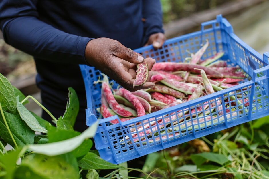 Before I plant my beans outside, I harden them off by putting them out in the day and bringing them at night. This acclimatises them to outdoor conditions, meaning they’re less likely to go into shock when they finally go out.