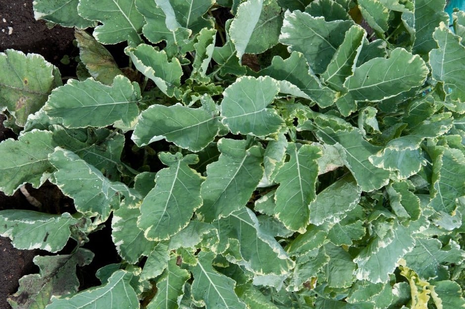 For something funky that would work well with ornamental planting, try perennial kale ‘Daubenton’s Variegata’ (below).