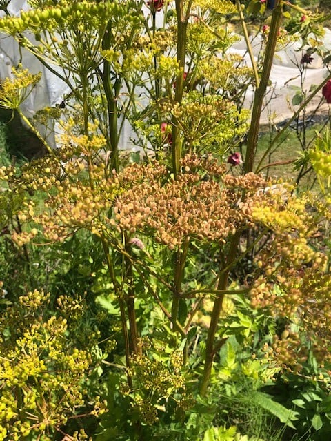 Even if you don’t save the seed, the flowers of parsnip are an interesting shade of acid yellow-green and can be used as a cut flower. However, be very wary in bright sunlight, of brushing through them with bare skin. Parsnip burn is a nasty blistering caused by touching the leaves on sunny days. Luckily, this doesn’t happen after they are cut in a vase.