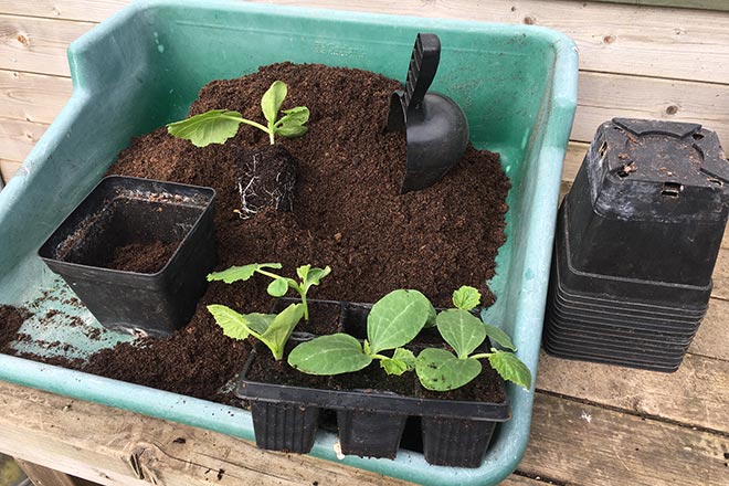 Harden off your courgette plants before planting, to gradually acclimatise them to outdoor conditions, and make sure your planting sites are prepared in advance (see Preparing the ground above). Then carefully remove each young plant from its pot, without disturbing the roots, and plant into the centre of your prepared sites, at least 90cm (3ft) apart. Firm them in gently, then water well. Protect young plants from slugs and snails.