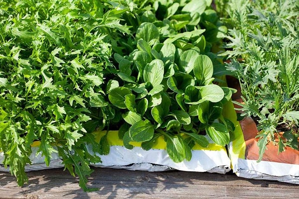 Salad leaves can include a whole range of leafy crops, to bring an exciting mix of flavours, textures and colours to your salads. The most obvious starting point is loose-leaf lettuces, of which there are many varieties. Then you can choose from a huge selection of other leaves ideal for growing as cut-and-come-again salads, including peppery rocket and American cress, mild-tasting lamb’s lettuce (or cornsalad), young spinach, chardand kale, oriental greens such as mizuna, mibuna and pak choi, spicy mustards, tangy endive and chicory, and zingy herbs such as coriander and sorrel.