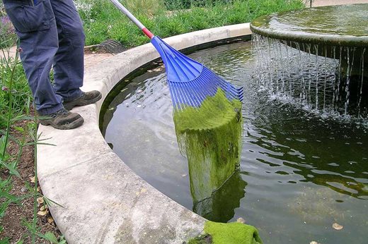 Shallow water features or those with water washing over cobbles can become green very quickly in summer weather. Eco products based on naturally-occurring micro-organisms or plant extracts may help keep the water clear.