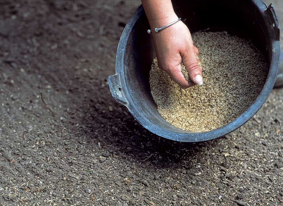 Avoid walking on or mowing newly sown grass until it has reached 5–8cm (2–3in) tall. Even then, only give it a light trim, with the blade at the highest setting.