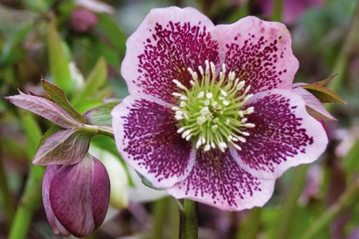 Cut leaves off Christmas and Lenten rose type hellebores to make way for the flowers.