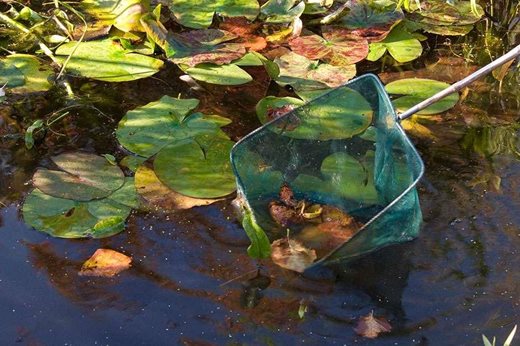 cover the surface of ponds with netting. Accumulated debris in the pond can encourage growth of algae and weeds.