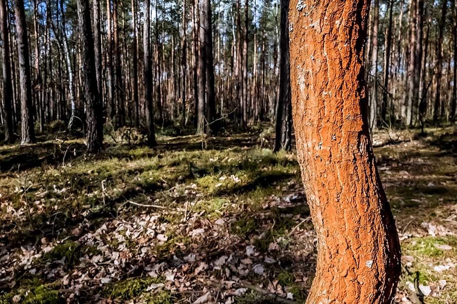 Tree trunks and branches host algae that appear as green, orange or rusty-red powdery deposits; these are most likely to be seen on the northern side of a tree. Trentepohlia is a common type of algae on trees in the UK; the species T. umbrina is easily noticed, due to its conspicuous rusty-red colour.