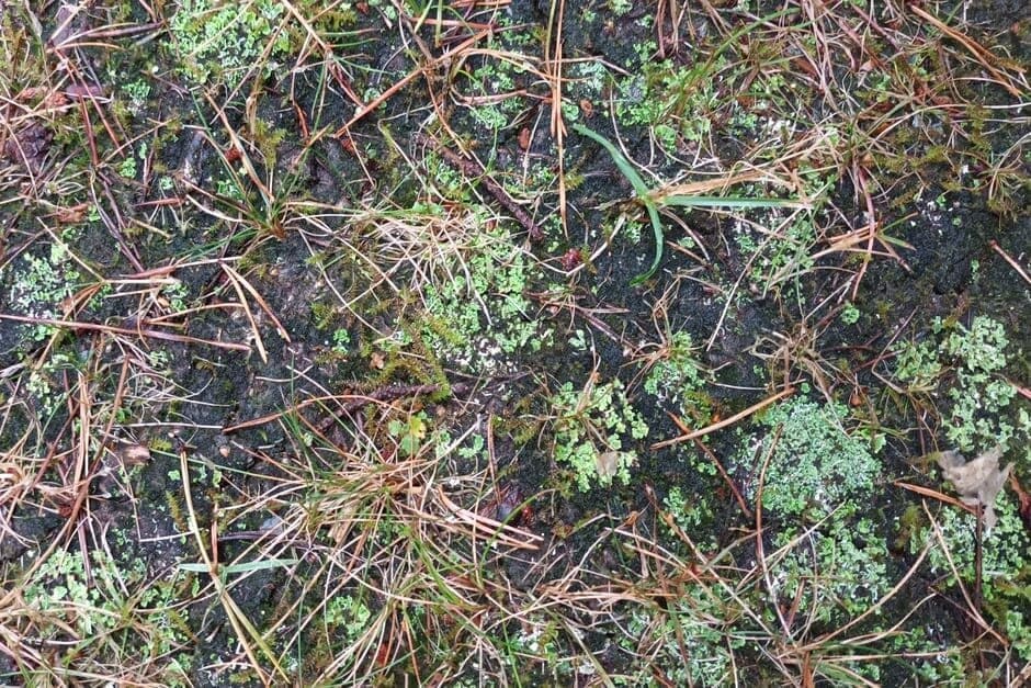Types of algae, lichens and liverworts that grow on lawns