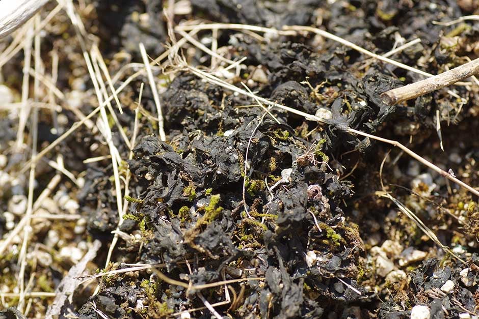To remove existing patches of algae, Nostoc, lichens and liverworts, skim underneath their growth with a spade or shovel. As they don't have true roots and only grow on the surface of soil, they come away easily. Add any removed growths to your home compost bin or green waste recycling bin.