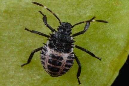 The BMSB is a -sucking insect. Similar to many other true bugs, early feeding can cause some fruit deformation. However, progressively and as the fruits grow and mature the damage becomes more severe leading to raised, corky areas of fruit and brown staining inside.