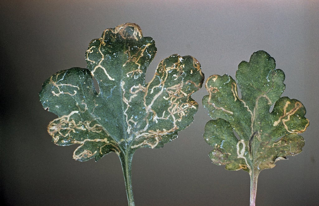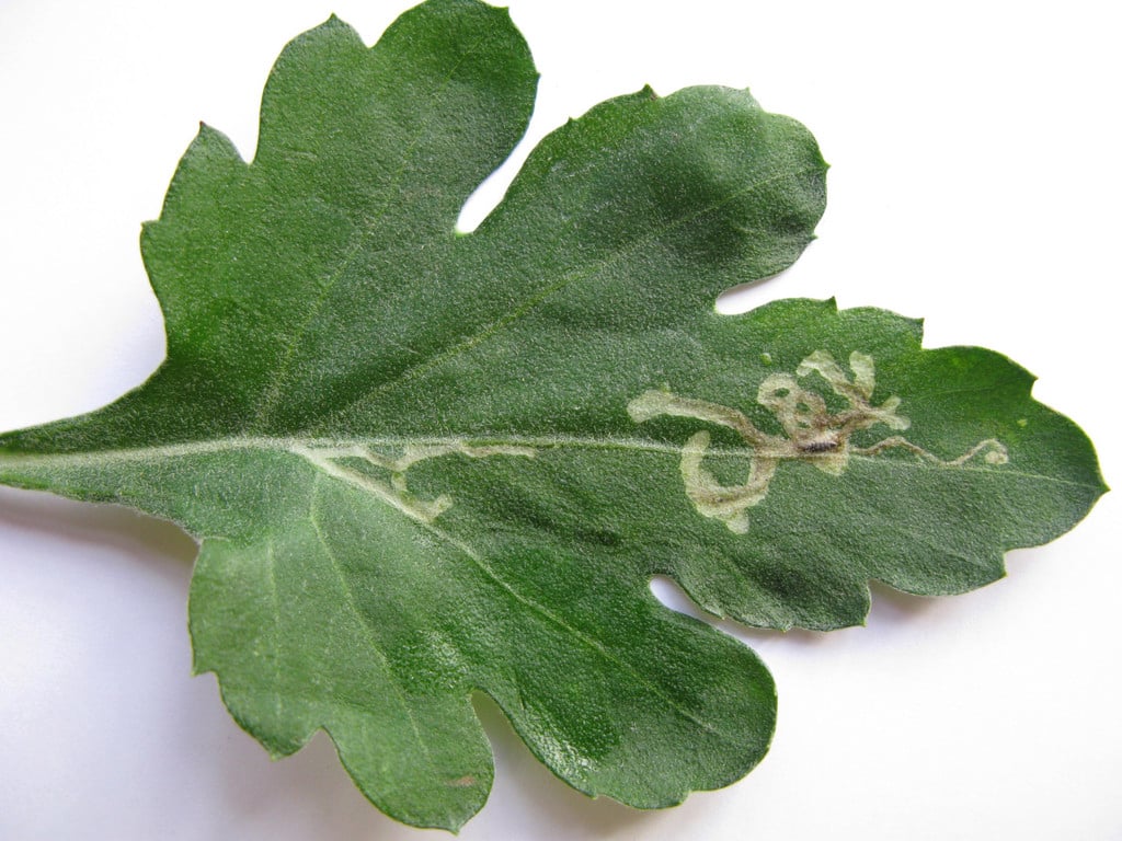 - Plants affected by chrysanthemum leaf miner will usually survive and produce flowers, even when there is extensive leaf mining, so this insect can be tolerated.