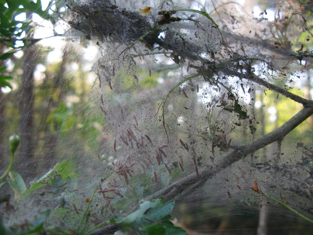 - When fully fed in early summer, the caterpillars pupate within the silk webbing