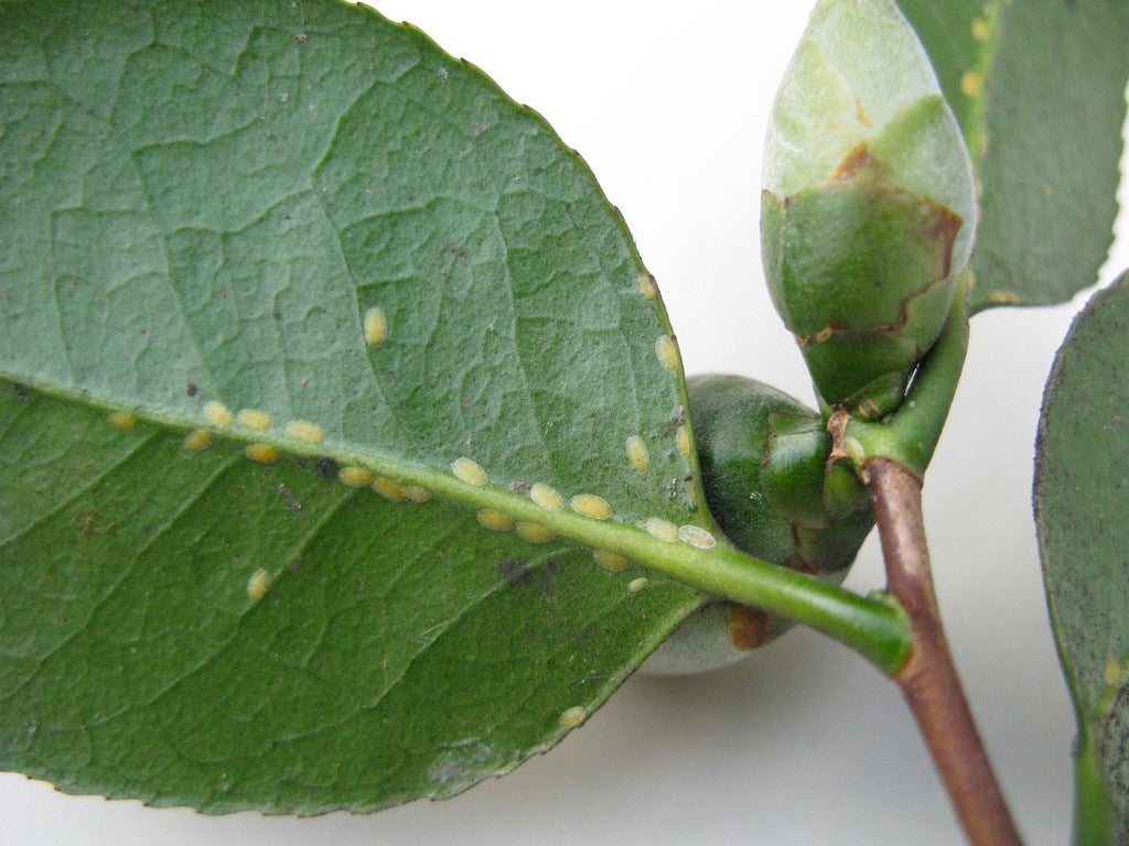 Cushion scale is a sap-sucking insect that feeds on the foliage of mainly evergreen trees and shrubs, especially camellia, rhododendron, Trachelospermum, Euonymus japonicus and holly.
