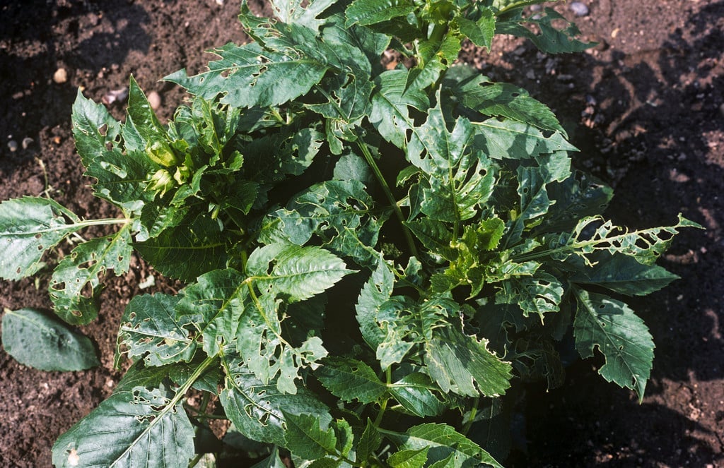 Main symptoms Young leaves and flower petals are eaten. Earwigs present on the plants after dark