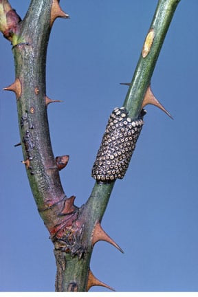 Lackey moth adults are mid-brown in colour and have a wingspan of approximately 30 mm. They lay eggs in bands of 100-250 that encircle the stems of a wide range of trees and shrubs.