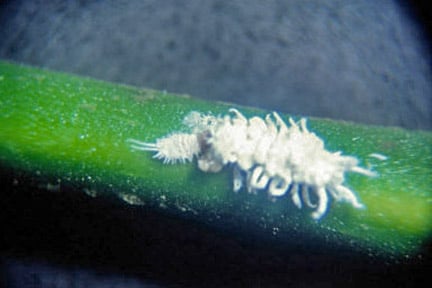 Female mealybugs lay eggs under a white, waxy coating. Mealybug nymphs resemble the adult insects and can complete their development in about a month in mid-summer. Breeding continues throughout the year in greenhouses, but takes place at a slower rate in winter.