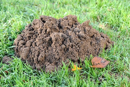 - The first sign of mole activity is heaps ofexcavated soil thrown up on the surface of lawns and flower beds (molehills)