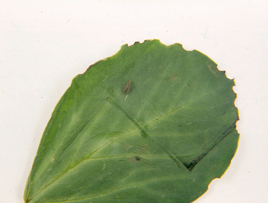 Adult pea and bean weevil is greyish brown and 4-5 mm long. They tend to drop to the ground when disturbed, so can be difficult to find. Their feeding activities are readily detected as the beetles eat a series of U-shaped notches around the edges of the leaves. The larvae feed unseen underground on the plants' root nodules, this has limited effects on the crop in the home garden.