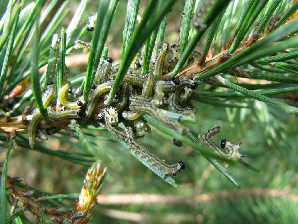 Large populations of pine larvae can cause considerable defoliation of trees, whilst this is unusual in gardens when it occurs it can affect the growth of the trees.