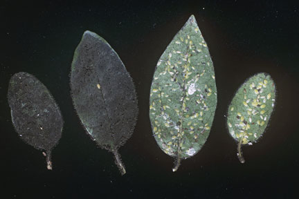 Apart from the presence of the insects and the white fluffy eggs masses (in spring) the main symptom is the presence of honeydew on which sooty mould often grows.