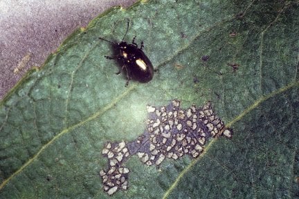 The adults and the larvae of willow leaf beetles graze away part of the leaf surface, causing the remaining damaged areas to turn brown and dry up. In some years these beetles can be very abundant and by the end of the summer most of the foliage on large trees can be affected.
