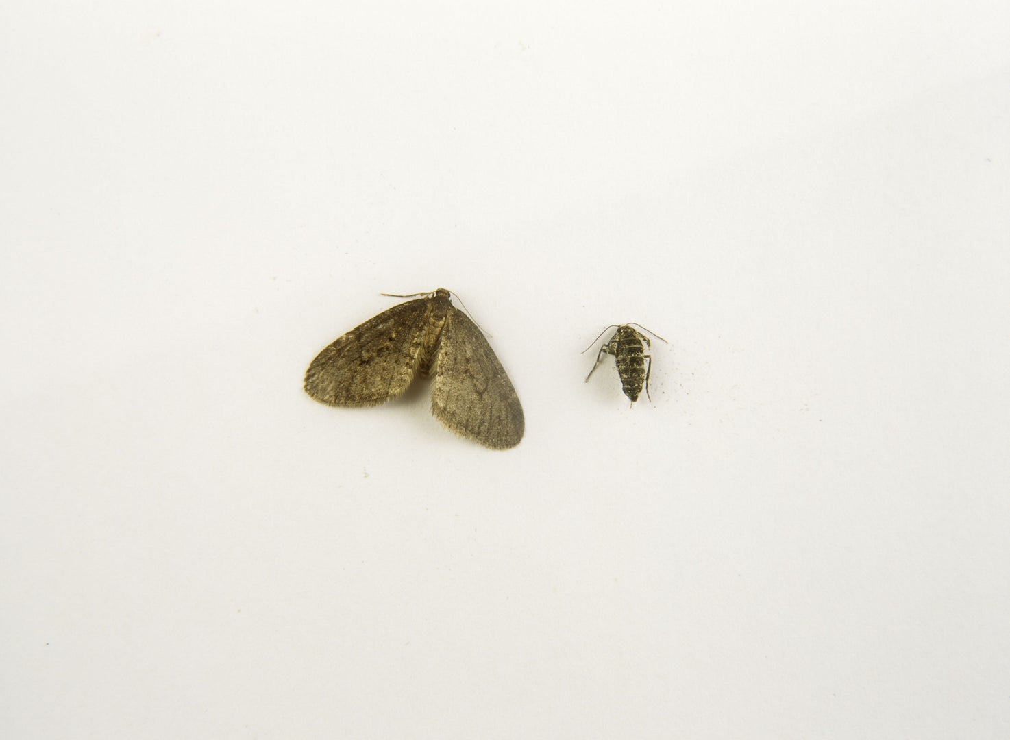 Winter moth is a name that can be used for a number of species that have adult moths that emerge and lay eggs between November and April. These moths all have wingless females that emerge from pupae in the soil and crawl up trunks to lay eggs on branches. The most important are the winter moth (Operophtera brumata), mottled umber moth (Erannis defoliaria) and March moth (Alsophila aescularia). The caterpillars of these moths hatch in the spring as buds are opening and they feed on most types of fruit tree and many trees and shrubs. The main fruit tree host are apples, pears, plums and cherries. Many ornamental trees are also hosts, including oak, sycamore, hornbeam, beech, dogwoods, hawthorns, Sorbus, roses, hazels and elms.