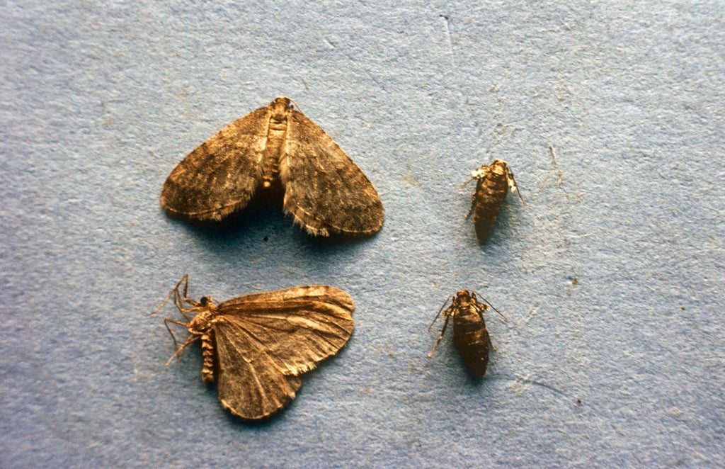 Wingless female winter moths emerge from pupae in the soil during November to April and crawl up trunks to lay eggs on the branches.