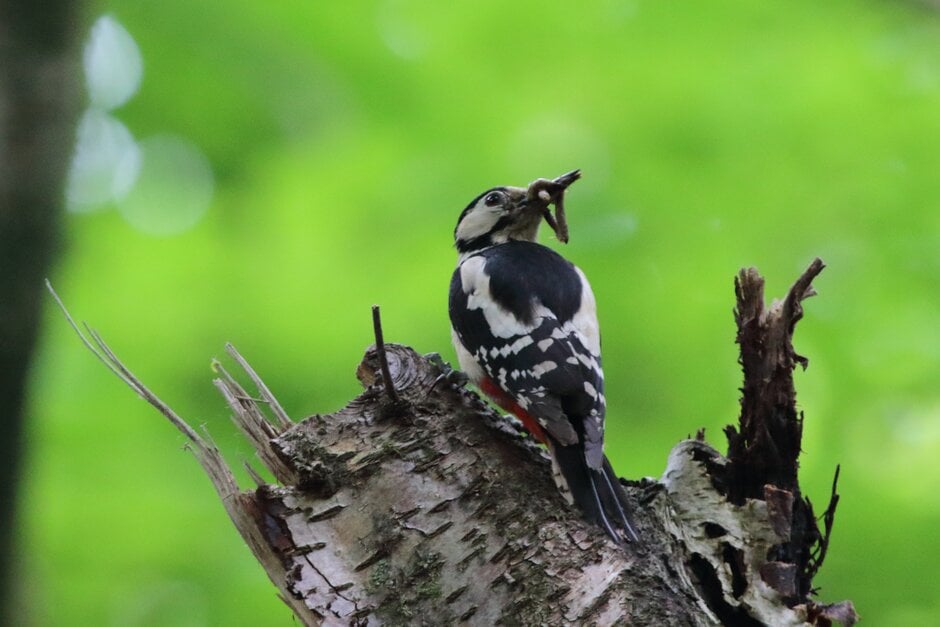 Keeping bird feeders topped up with peanuts, sunflower seeds and fat balls, and leaving dead wood which house wood-boring insects will encourage great spotted woodpeckers into your garden. Leaving areas of long grass for ants and insects will also create ideal habitat for the green woodpecker.