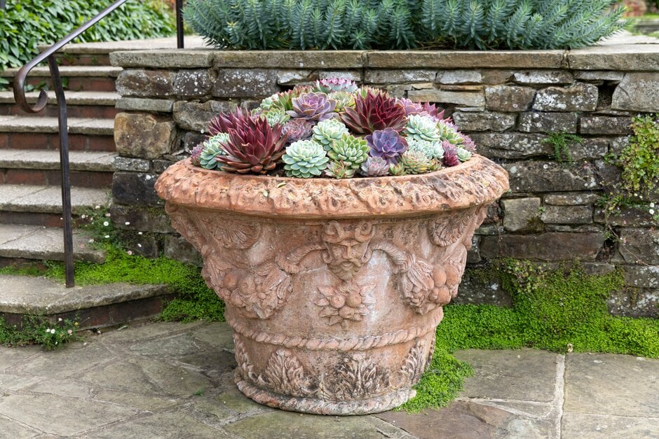 Drought tolerant:Aeonium 'Zwartkop', Echeveria, Mesembryanthemum, sedum.