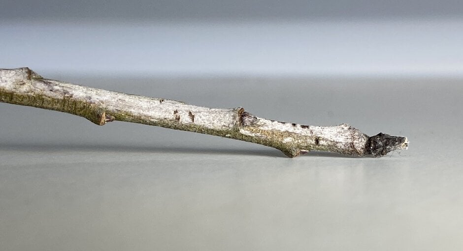 - On twigs in winter: Twigs on which mildew is overwintering will often have a silvery appearance, particularly at the tips
