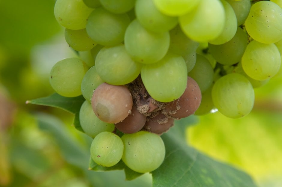 Both indoor and outdoor grapes suffer from fungal diseases which affect the leaves and fruit. The three top grape diseases are downy mildew, powdery mildew, and grey mould. Four grapevine viruses have also recently been detected in the U.K. but are not currently known to be widespread.