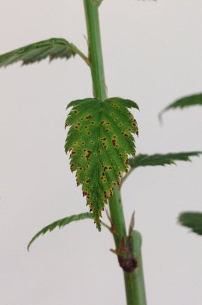 - As the infection progresses the spots coalesce and the leaves turn yellow through to brown and fall from the stems
