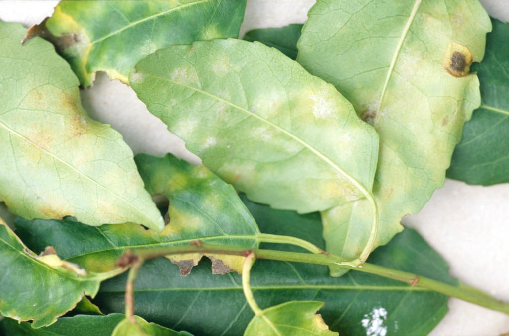 - initially grows over the leaf surface, visible as a white powdery coating, particularly on the underside of the leaf