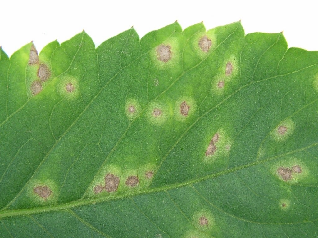 - White spore production may sometimes be seen on the surface of affected leaves