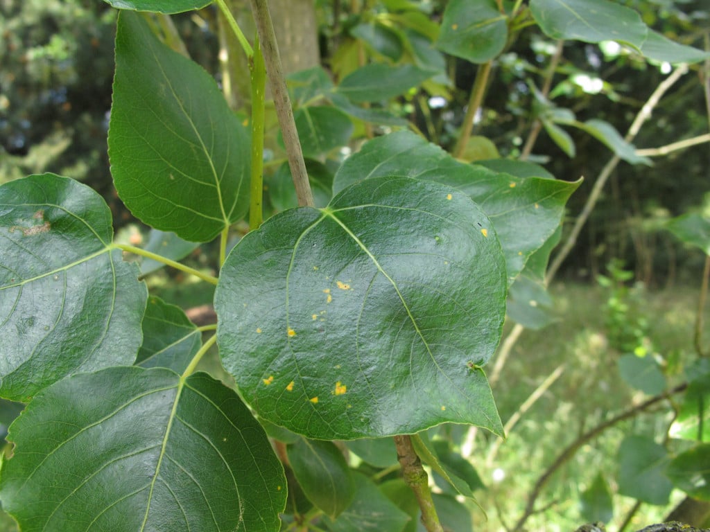 - Poplar, willow and birch: Dusty orange spots (pustules) on the undersides of the leaves