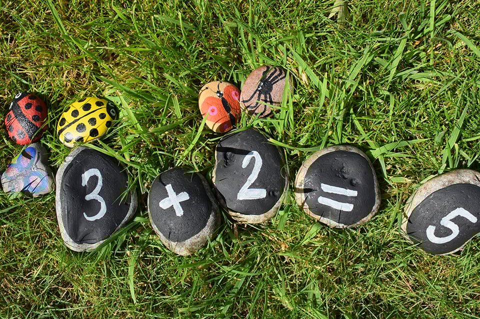 - Maths: Use pebbles to introduce and practice counting, numeracy, and shapes