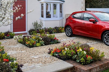 These are design solutions taken from real life and flower shows to help you create an attractive garden complete with off-street parking. Further design ideas can be found on our page on designing front gardens.