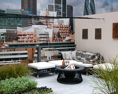 Make sure that pots or containers on exposed rooftops have a low centre of gravity to stop them being blown over – long, low planters work especially well. Taller plants like trees, topiary and climbers will need fixing securely to buildings or rails. Make the most of any sheltered spots for a table and chairs.Plants