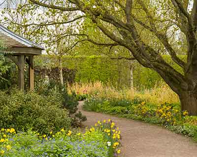 Drifts of daffodils brighten the Orchard in early spring, as a mass of 20,000 bulbs planted over the last two years come into bloom. In the Community Wellbeing garden, daffodils lead the way for a pageant of spring bulbs, with tulips and alliums following later in spring.