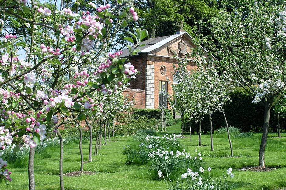 Although not a botanical garden, the Trust tries to maintain a period-relevant style and species, keeping to the period 1680-1760. Among the 600 different trees, plants and shrubs are two apple and pear orchards growing ancient heritage species. Apple juice, honey and vegetables are on sale seasonally form the outdoor courtyard shop and cafe.