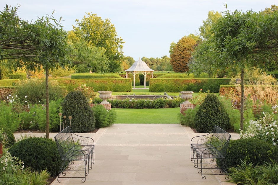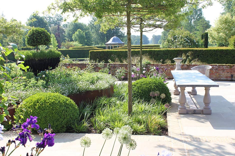In 2000, the four-acre Walled Garden was re-designed to include a large arched colonnade of Leylandii, grass gardens, mound, pleached ornamental pears and a theatre of yew. A rose terrace was added in 2016. Rebecca Nicolle and her husband took over the management of the house, gardens and estate in 2010.