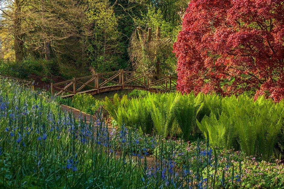 In the tranquil Wild Garden, which is arranged around a stream, visitors can enjoy a variety of spring flowers as well as specimen acers and gunneras. The more formal gardens surrounding the hall are designed as a series of individually planted 'rooms'. These include pergolas, statues, rose borders, double herbaceous borders and pools.