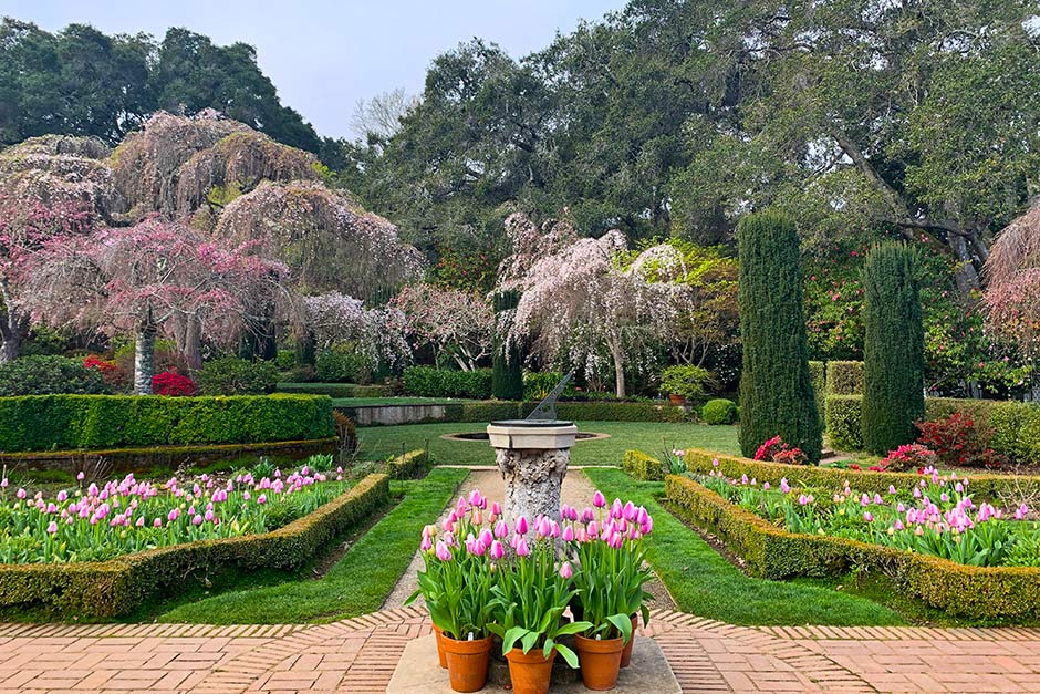 Filoli, set against the backdrop of the Santa Cruz Mountains, offers 16 acres of formal design and natural beauty. Visitors can explore a series of garden rooms framed by terraces, including the elegant English Renaissance-style section with yew-lined avenues and the dramatic Sunken Garden, designed by Bella Worn and planted with succulents and cacti. Seasonal displays bring year-round colour, from spring daffodils and tulips to summer roses and salvias, while the Walled Garden provides intimate spaces shaded by blossoming crab apple and cherry trees. Beyond, the working garden showcases rows of fruit, vegetables and flowers.