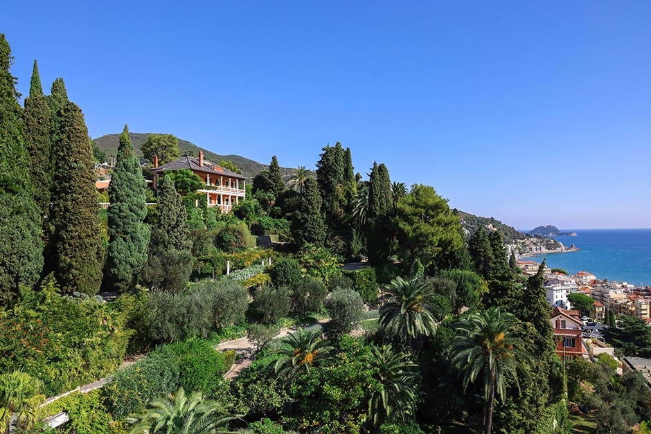 The gardens of Villa della Pergola, located in Alassio on the Riviera, offer a stunning view of the Mediterranean and represent a unique example of an Anglo-Mediterranean park. Created in 1875 by General William Montagu-Scott McMurdo and his wife Lady Susan Sarah Napier as their winter retreat, the property gained further fame when Scottish Baronet Walter Hamilton-Dalrymple purchased it in 1900. By 1907, it was celebrated as a “worthy rival” to the famous Mortola gardens of Sir Thomas Hanbury, a testament to the couple’s passion for nature and horticulture. The Hanbury family, who owned the property from 1922 to 1982, enhanced the garden over several decades, leaving a lasting legacy.