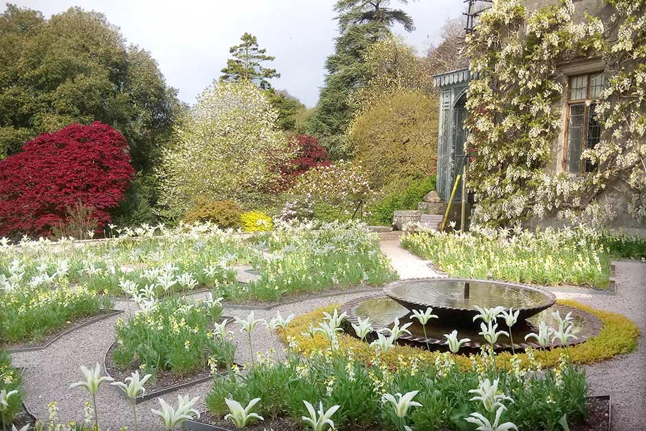 The 108-acre garden features formal gardens around the house, including a 330ft-long herbaceous border, a rose walk, a parterre, a gravity-fed fountain, a shell house and sweeping lawns that lead down to the River Tamar.