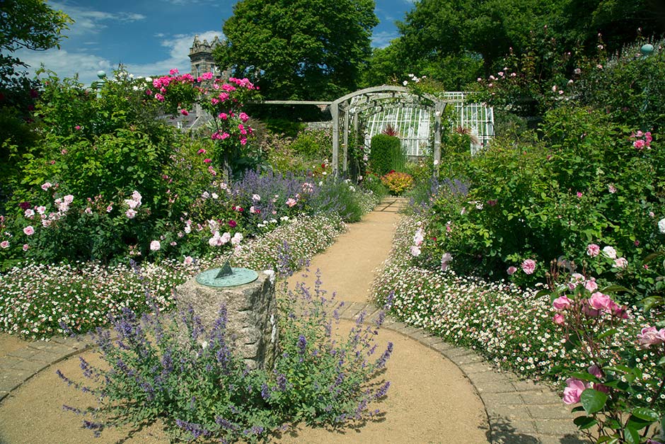 This estate features walking paths, a stumpery, ornamental grasses, bridges, fountains, a memorial garden, a maze and a walled garden. Managed by the Seigneural family and restored to its 1860 design. At the heart of the gardens are unique buildings, including La Seigneurie Manor House, a Napoleonic signalling tower, a Victorian vinery, an impressive dovecote, an amphitheatre and two chapels.