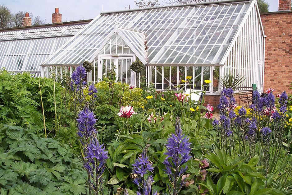 During summer, tomatoes, cucumbers and more unusual vegetables can be found in the glasshouses. Herbaceous borders surround the Hall and its Sunken Garden.